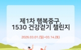 정읍시 최준규 기자2026. 02.23[시사토픽뉴스]부산 중구는 관내 중구민과 직장인을 대상으로 3월 1일부터 3월 14일까지 걷기 앱 워크온을 활용한‘제1차 행복 중구, 1530 건강걷기 챌린지’를 운영한다 참여자들의 걷기 실천을 위한 본 챌린지는 시간과 장소 제약 없이 워크온 앱이 설치된 휴대폰을 지참한 후 기간 내 70,000보 걷기를 목표로 하고 있으며, 목표 달성 시 추첨을 통해 소정의 상품을 제공할 예정이다. ‘제1차 행복중구, 1530 건강걷기 챌린지’는 2월 23일부터 사전 예약을 시작하며 참여를 희망하는 주민은 스마트폰에서 워크온 앱을 설치하고 ...