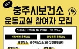 정읍시 최준규 기자2026. 02.23[시사토픽뉴스]충주시 보건소는 시민들의 건강한 생활 습관 형성과 활기찬 일상 회복을 위해 ‘2026년 상반기 운동교실’ 참여자를 오는 3월 20일까지 모집한다고 23일 밝혔다. 이번 운동 교실은 연령과 신체 특성을 고려해 △비만예방 운동교실 △관절튼튼 운동교실 등 두 가지 과정으로 나누어 운영된다. 비만예방 운동교실은 65세 미만 성인(BMI 25kg/㎡ 이하)을 대상으로 3월 23일부터 5월 29일까지 10주간 주 3회(월·수·금) 진행된다. 프로그램은 스텝박스를 활용한 유산소 운동, 체중부하 근력 강화, 폼롤러 스트레칭 등...