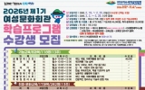 여수 최준규 기자2026. 02.19[시사토픽뉴스]여수시 여성문화회관에서 진행하는 ‘제1기 여성문화회관 학습프로그램’ 수강생을 오늘(19일)부터 25일까지 5일간 수강인원 전원을 선착순으로 모집한다. 모집 과목은 ▲양재, 제과제빵, 홈패션 등 기능반 8개 ▲한지공예, 오카리나, 캘리그라피 등 취미반 17개 ▲의류수선, 생활요리, 플루트 등 야간반 12개 등 37개 과목이다. 이 중 밸리댄스, 소도구 필라테스, 여성합창, 체형교정발레 4개 과목은 여성 전용 수강 과목이다. 모집인원은 573명으로 교육 기간은 3월 2일부터 5월 29일까지다. 여수시에 거주하는...