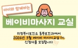 전주시 최준규 기자2026. 02.19[시사토픽뉴스]의정부시 보건소는 2월 24일부터 ‘베이비 마사지교실’ 1기 프로그램에 참여할 3~6개월 영아와 보호자 12팀을 모집한다. 베이비 마사지는 엄마와 아기의 유착관계를 형성하고 혈액순환을 촉진시켜 아이의 건강한 발달 및 면역력 향상에 도움을 주는 프로그램이다. 마사지 전문 강사를 초빙해 ▲성장에 도움을 주는 마사지 ▲면역력 증진을 위한 마사지 ▲소화 및 심폐기능 강화를 위한 마사지 ▲두뇌 발달과 숙면을 위한 마사지 등을 실습 위주로 진행한다. 프로그램은 동부보건과 교육실에서 3월 9일부터 30일까지 매주 월요일 오후 ...