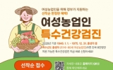 담양 최준규 기자2026. 03.03[시사토픽뉴스]거창군은 오는 3월 31일까지 여성농업인의 농작업 질환 예방과 건강복지 증진을 위한 ‘2026년 여성농업인 특수건강검진 지원사업’ 신청받는다. 이번 사업은 농작업으로 인한 근골격계 질환 등 여성농업인에게 취약한 질환을 조기에 발견하고 예방하기 위해 추진되며, 총 591명을 대상으로 1인당 22만 원 상당의 건강검진 비용을 전액 지원한다. 지원 대상은 거창군에 거주하는 51세부터 80세까지(1946.1.1.~1975.12.31. 출생자 중 짝수년도 출생자) 여성농업인으로, '농어업경영체 육성 및 지원에 관한 법률'에...