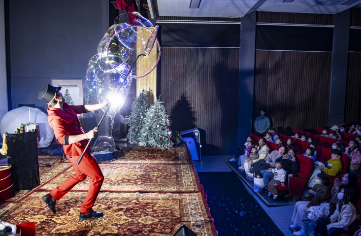 규모감 있는 버블 기술과 안개, 스노우 특수효과가 어우러져 관객에게 한겨울 눈 속을 걷는 듯한 황홀한 시각 경험을 제공했고, 특히 아이들이 초대형 비눗방울 안에 직접 들어가 보는 체험형 프로그램이 포함되어 있어 아이들이 창의력과 상상력을 키우고 가족 간 유대감을 강화하는 의미 있는 경험을 할 수 있었다.