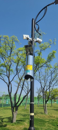 포충기는 자외선 램프를 이용해 모기 등 위생해충을 유인한 뒤 포획·분쇄하는 장비다. 화학적 살충제를 사용하지 않아 인체와 환경에 무해하며, 가로등 점등과 동시에 자동 작동돼 에너지 소비와 환경오염을 최소화한다. 특히 야간 활동이 많은 공원과 주거 인접 지역에서 방역 효과가 높은 친환경 물리적 방역 수단으로 평가받고 있다.