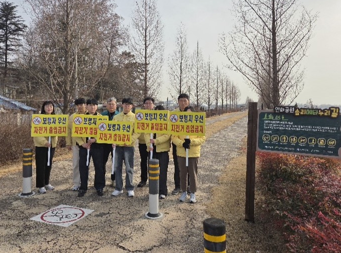 익산시는 보행약자의 안전한 이용을 위해 4일 인화공원에서 '무장애나눔길 자전거·전동킥보드 이용금지 캠페인'을 펼쳤다.