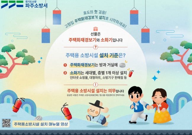 ![]() 파주소방서 “설 명절, 주택용 소방시설이 가장 좋은 선물입니다” |