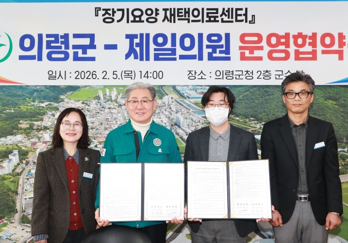 의령군은 5일 군청 2층 군수실에서 제일의원(원장 주원근)과 ‘장기요양 재택의료센터 운영협약’을 체결하고, 거동 불편 장기요양 수급자를 대상으로 의료서비스와 돌봄 연계를 원활히 제공하기 위한 민·관 협력체계를 구축했다고 밝혔다.
