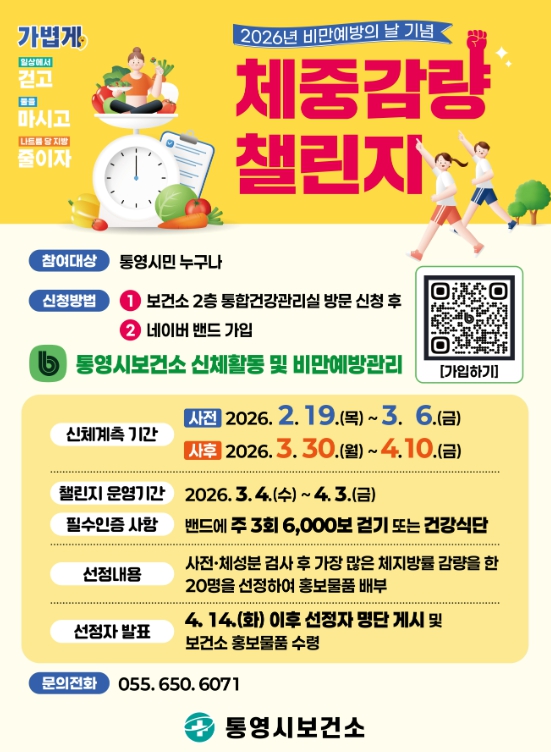 ![]() 통영시, 비만예방의 날 맞아 체중감량 챌린지 |