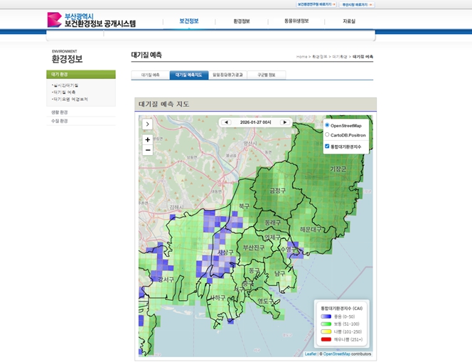 ![]() 보건환경연구원 정보공개시스템 대기질 예측지도 서비스 운영 화면 |