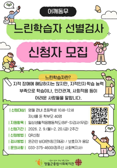 ![]() 2026년 ‘느린학습자 선별검사’ 신청자 모집 |
