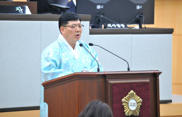 이날 구 의원은 직접 한복을 착용한 채 발언대에 올라 “오늘 제 모습이 다소 낯설게 보일 수도 있겠지만, 이는 단순한 복장의 변화가 아니라 여수의 얼과 정신을 다시 꺼내 들자는 문제 제기이자 제안”이라며 “여수의 정체성을 행동으로 실천하자는 뜻”이라고 설명했다.