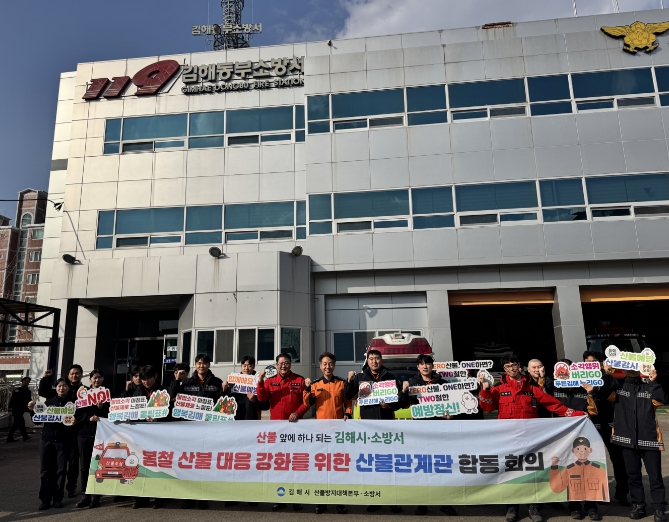 ![]() 김해시 산불방지대책본부와 김해동부소방서가 봄철 산불 대응 강화를 다짐하고 있다. |