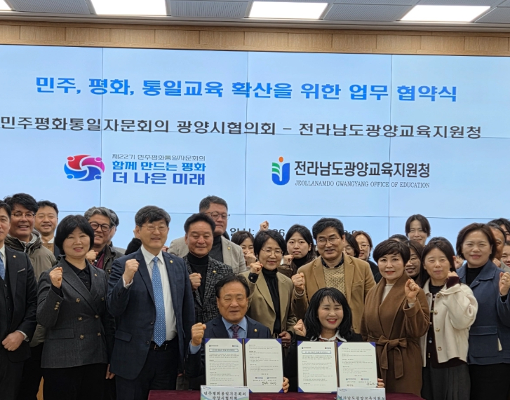 김여선 교육장은 “민주·평화·통일교육의 실효성을 높이기 위해서는 전문성과 유관기관 간 협력이 무엇보다 중요하다”며 “이번 협약을 계기로 학생 중심의 체험형 통일교육을 확대하고, 미래세대가 올바른 통일관과 공동체 의식을 함양할 수 있도록 노력하겠다”고 말했다.