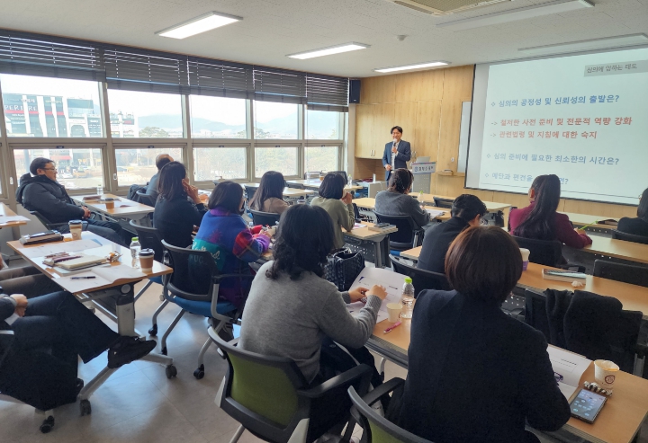이번 연수는 신규 심의위원을 대상으로 한 출발점 연수로 주요 내용은 ▲ 학교폭력대책심의위원회 운영 전반에 대한 이해 ▲ 엄격하고 분명한 사실 관계 구성 ▲ 판례의 태도를 기초로 한 학교폭력 해당여부 판단 ▲ 고시 기준에 따른 엄격한 점수 산정과 세부 판단과정 등으로 구성됐다.