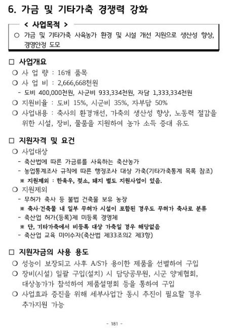 ![]() 가금 및 기타가축 경쟁력 강화 |