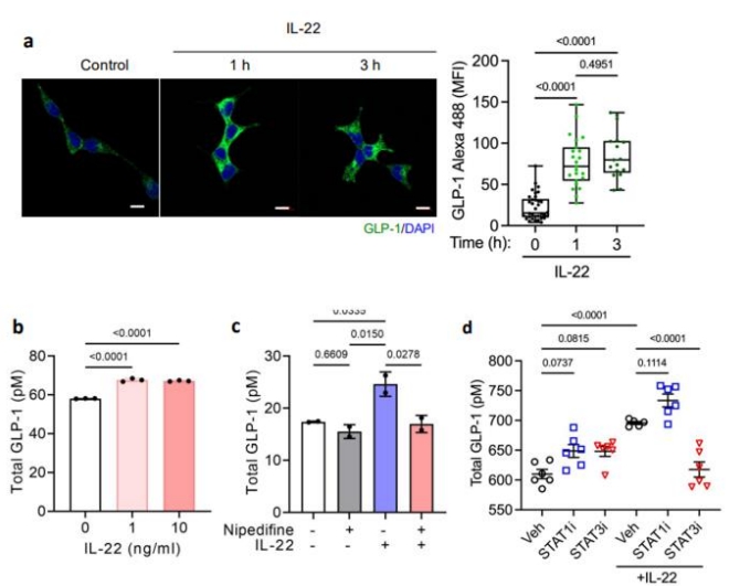 논문은 'Intestinal interleukin-22 enhances GLP-1 production via the STAT3 pathway to improve glucose homeostasis during high-fat diet induced obesity in a study with male mice'제목으로 지난 2월 21일 게재됐다.