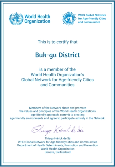 문인 북구청장은 “우리 구가 고령친화도시로 다시 인증받은 것은 어르신들이 지역사회에서 행복한 일상을 누릴 수 있도록 지속적으로 노력해 온 결과”라며 “고령친화도시 조성 사업을 통해 사회의 버팀목인 어르신들이 건강하고 품위 있는 삶을 보낼 수 있도록 최선을 다하겠다”고 말했다.