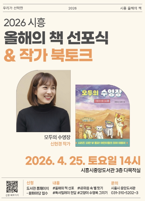 2026년 시흥 올해의 책으로 선정된 도서는 총 7권이다. ▲어린이도서 '모두의 수영장'(신현경), '거꾸로 토끼끼토'(보람), '별에게'(안녕달) ▲일반도서 '안녕이라 그랬어'(김애란), '노 피플 존'(정이현), '단 한 번의 삶'(김영하) ▲환경도서 '우리에게 남은 시간'(최평순)이다. 이 도서들은 지난 1월부터 4월까지 시민 추천(881권)을 시작으로 100인 시민선정단의 토론과 최종 시민투표를 거쳐 최종 선정됐다.