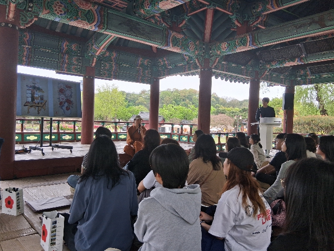 전통 선율이 완월정의 고즈넉한 분위기를 채운 가운데, 이어진 ‘작가와의 대화’에서는 캔버스에 담긴 한복 동화이야기 및 디즈니 ‧ 마블 협업이야기 등 비하인드 스토리와 한복의 아름다움을 나누며 참가자 50여 명의 뜨거운 호응을 얻었다.