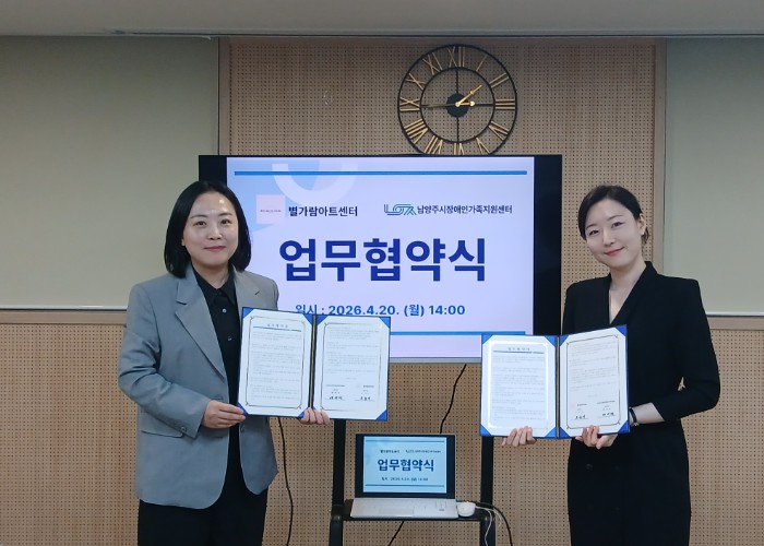 ![]() 남양주시장애인가족지원센터, 별가람아트센터와 업무협약 체결… 장애인 가족 정서 지원 강화 |